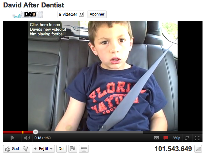 Eksempelvis har faren til den populære YouTube-video David after Dentist tjent mere end 100.000 dollar (omkring 530.000 kroner) på videoklippet, der viser hans søn, der er ualmindeligt omtåget efter at have været under bedøvelse hos tandlægen.