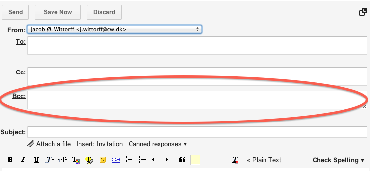 Vælger du at sende den til flere medier på én gang, skal du huske at skrive modtageradresserne i feltet bcc. Det sikrer, at modtagerne ikke kan se, hvem du ellers har sendt mailen til.
