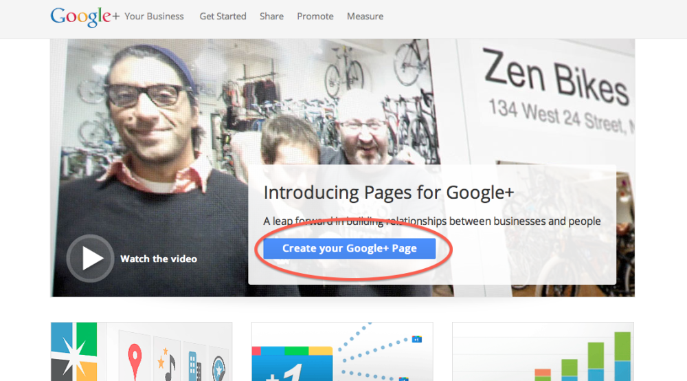 Det første du skal gøre er at logge ind på adressen http://www.google.com/+/business/.