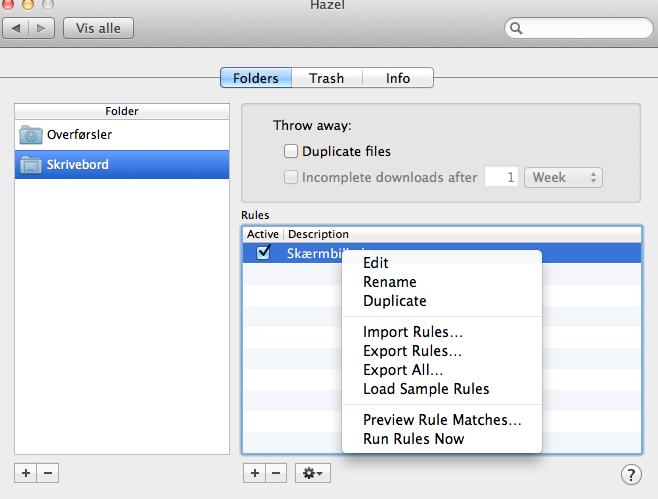 Men til Mac findes der et smart lille program, der hedder Hazel, som automatisk kan holde orden på skrivebordet og automatisk tømme dit skrivebord.