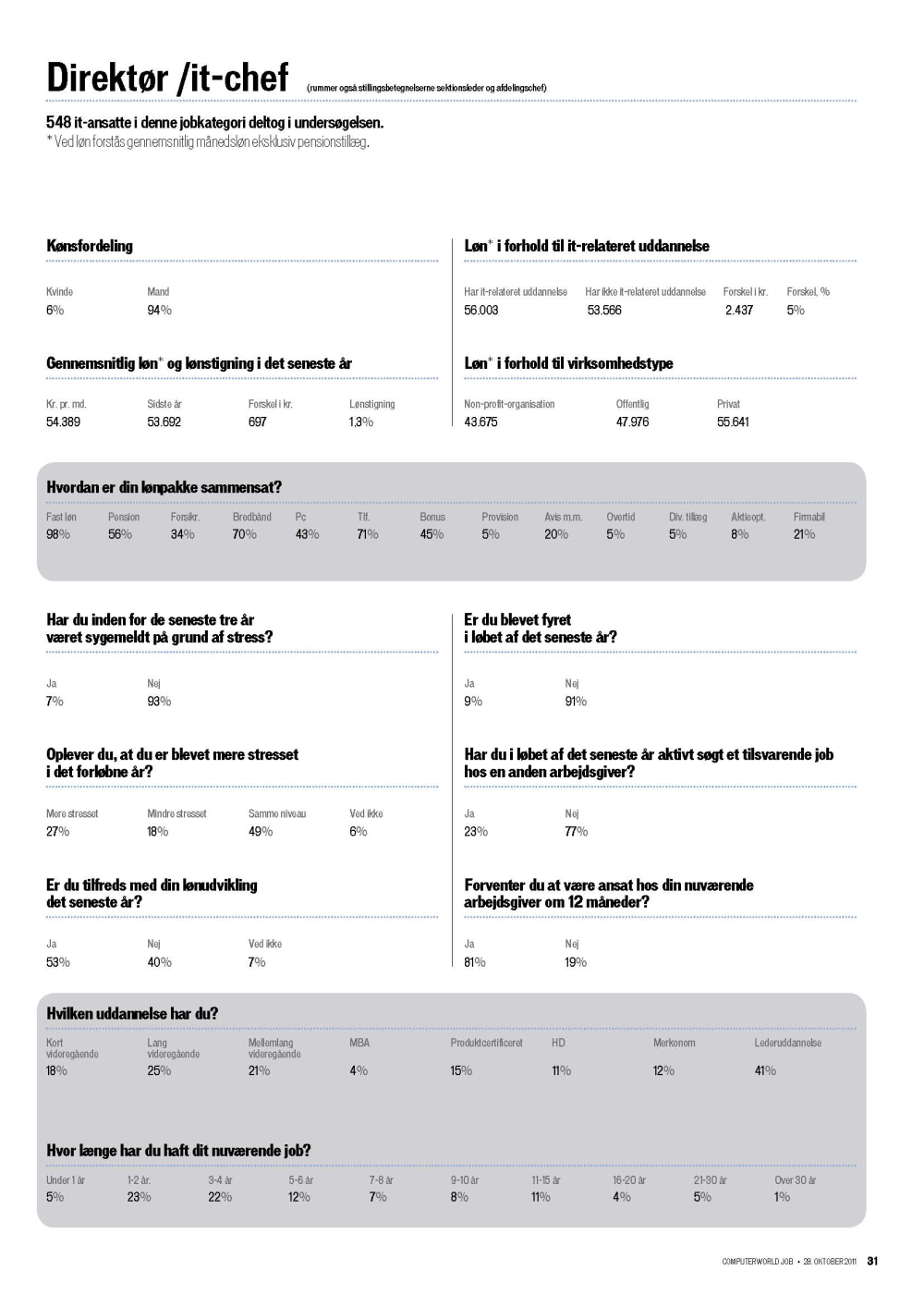 I alt deltog 3.820 it-ansatte i undersøgelsen. Ved løn forstås gennemsnitlig månedsløn eksklusiv pensionstillæg. 548 direktører og it-chefer svarede i deres kategori.