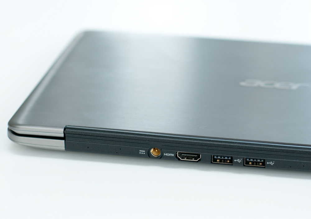 Modsat flere konkurrenter har Acer valgt at placere de fleste porte bag på computeren i stedet for på siderne.