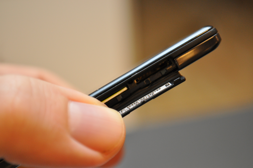 Nederst på telefonens venstre side er der en lille klap, som du kan åbne. Bag klappen gemmer der sig to porte, hvor du kan sætte et sim- og et micro-SD-kort i. Dermed slipper du for at pille bagsiden af og batteriet ud, når du skal skifte simkort eller sætte et hukommelseskort i. Det er nemt og bekvemt.
