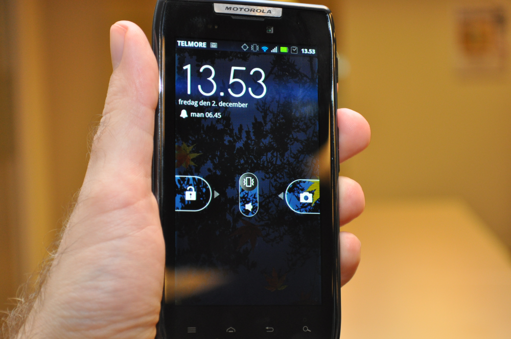 Allerede på skærmbilledet, hvor du låser telefonen op, har Motorola plottet flere detaljer ind. Trækker du lås-ikonet fra venstre mod højre, låser du telefonen op.