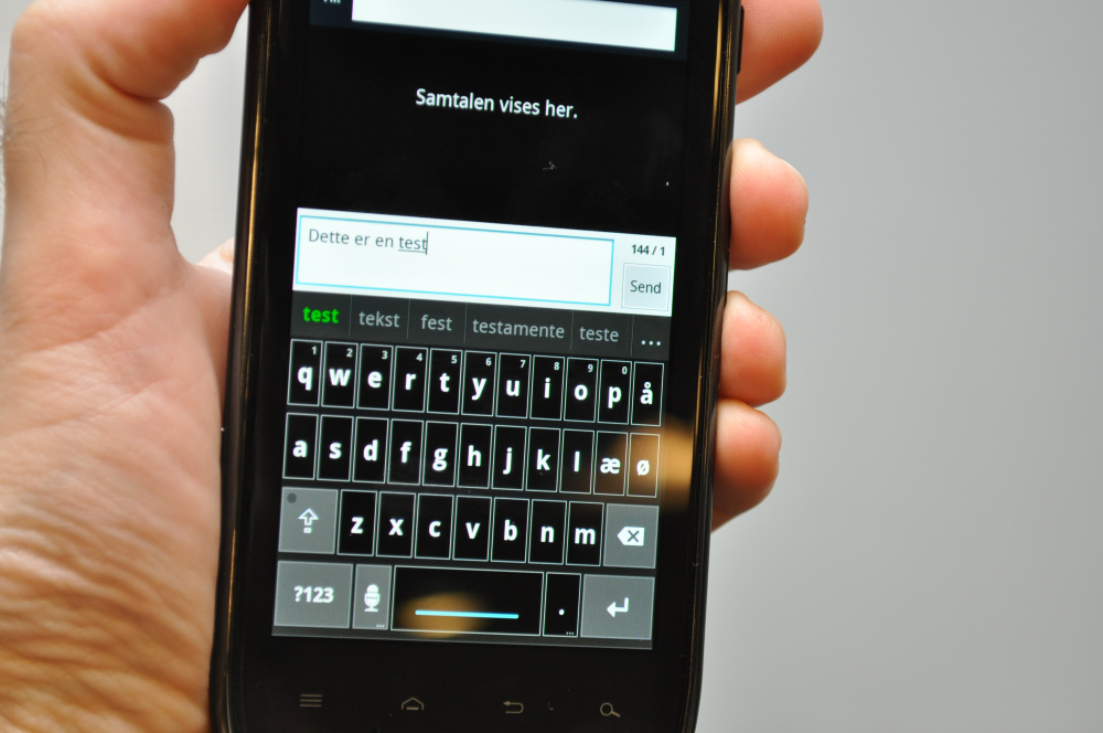 Ud over standard-tastaturet medfølger der også et swype-tastatur, som du kan vælge at bruge i stedet. Swype-tastaturet har et lidt anderledes layout, dog er Æ, Ø og Å der heldigvis.