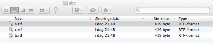 Når du åbner Finder-vinduet på din Mac og vælger en tilfældig fil, kan du med et klik på tab-tasten finde den næste fil i alfabetisk rækkefælge.