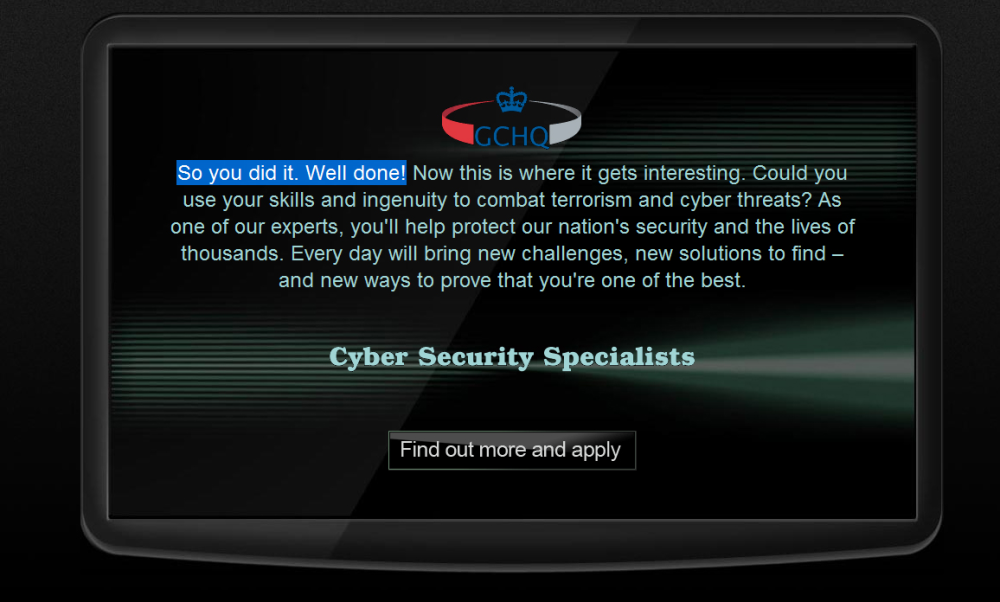 Kode-knæknings-rekrutteringen til den britiske spiontjenste er forbeholdt britiske statsborgere. Men snyde-åbningen har links til andre (offentlige) sider, som kan give et interessant indblik i det enorme fortagende, som aflytnings-tjenesten GCHQ har udviklet sig til.