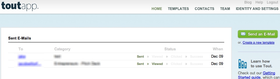 Når du har sendt en mail via ToutApp, kan du med det samme se, om den er blevet åbnet.