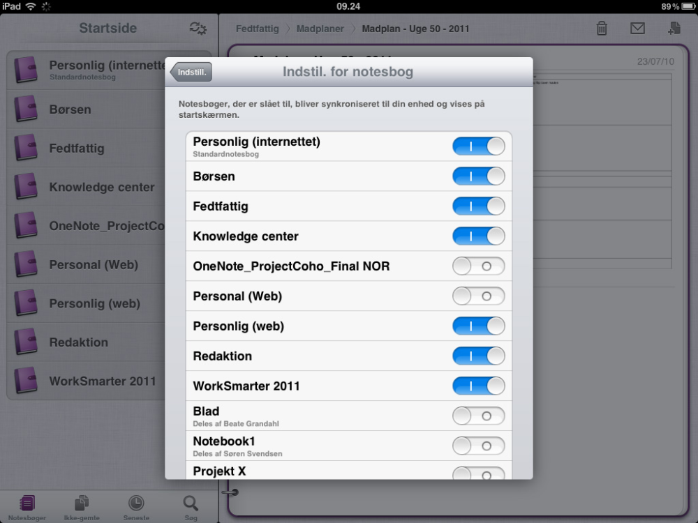 Den nye OneNote App henter alle dine notesbøger fra SkyDrive, men du kan selvfølgelig slå de notesbøger til eller fra, så du kun synkroniserer de notesbøger, du har brug for på farten.