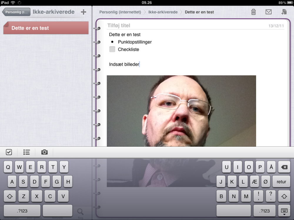 Du har ikke helt de samme muligheder som i pc-versionen, men vigtige detaljer som f.eks. punktopstillinger og tjeklister kan nemt indsættes, ligesom du kan bruge de indbyggede kameraer i iPad'en til at tage billeder af for eksempel mødetavler eller andre ting, du har brug for billeder af.