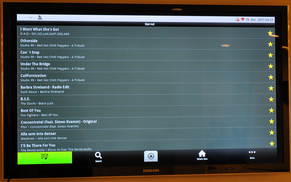 Vi har blandt andet testet populære apps som Spotify, Angry Birds og DR Radio, og de fungerer fint. Da de er lavet til en lille skærm, betyder det, at når de ikke altid er specielt kønne, når de bliver blæst op på en stor fladskærm, men til gengæld er det nemt at se fra sofaen.