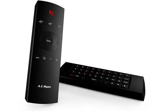 Fjernbetjeningen har et stort plus, som nok er inspirreret af den konkurrerende Boxee Box, for på bagsiden af fjernbetjeningen finder du et fuldt tastatur.
