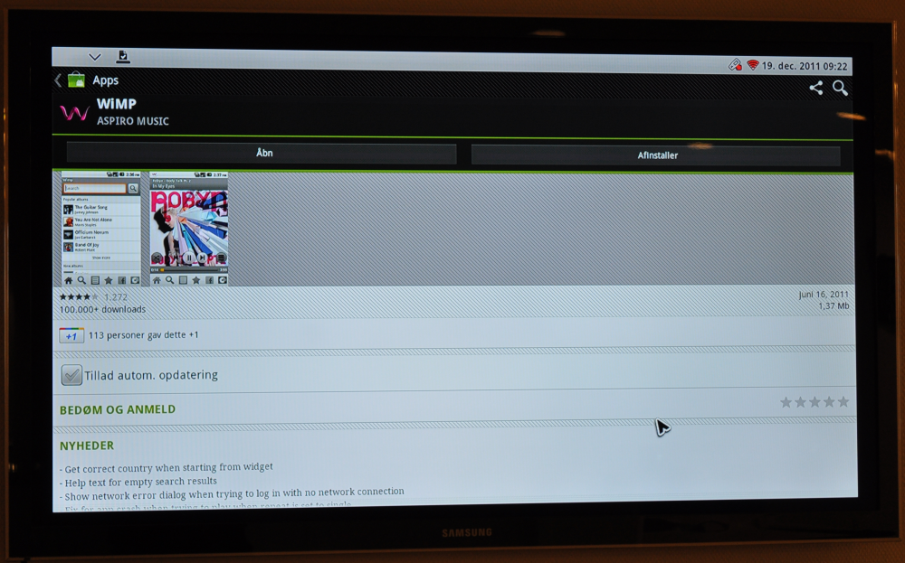 I stedet havde boksen en dårlig kopi med navnet AndroidPIT. Herfra er det da muligt at hente apps, men du skal godt nok lede længe, hvis du skal finde nogen, du kender. Selv listen over de mest hentede apps indeholder alt muligt skrammel. Mange apps er tyske, eller også virker de kun på telefoner, så du får en fejl, hvis du prøver at installere dem.