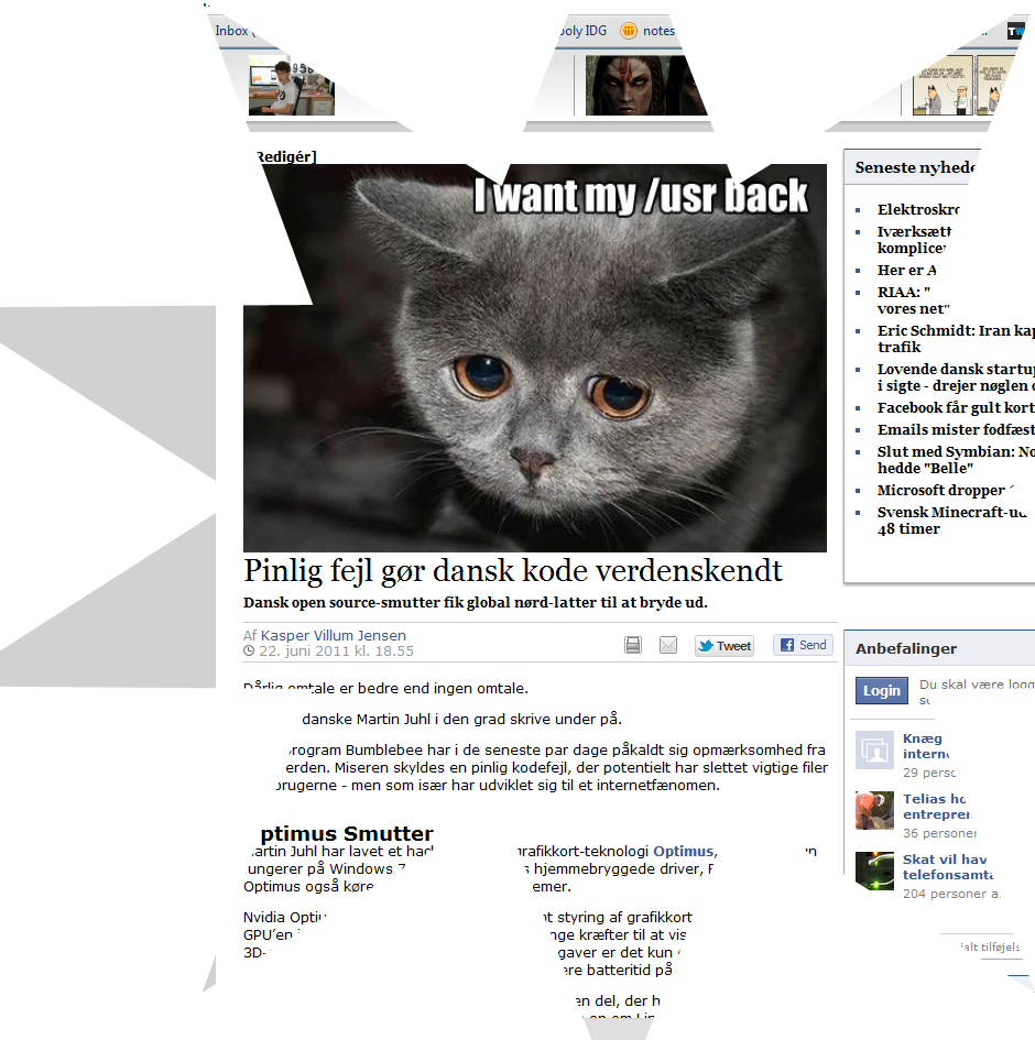 Øjeblikket hvor det går op for den danske udvikler Martin Juhl, at den version af Linux-grafikkort-driveren Bumblebee, som han lige har uploadet, indeholder en kode-fejl, der fører til sletning af biblioteket USR (/usr), så operativsystemet skal geninstalleres. Måneden efter går det op for Martin Juhl, at hans kodefejl har gjort ham til ophavsmand til et internet-meme og skabt en af de længste og morsomste debattråde for udviklere.