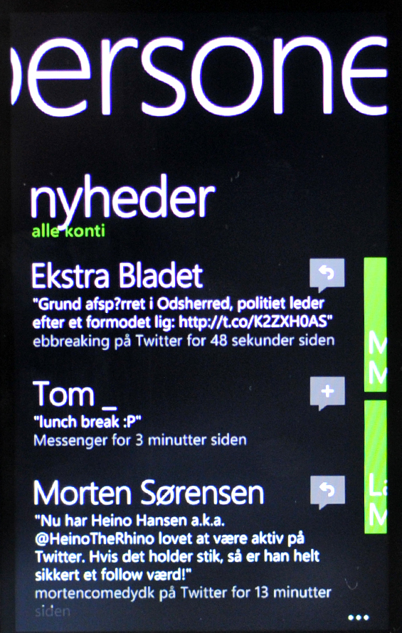 Her kan du ikke bare lynhurtigt få adgang til dine kontakter. Fra "personer-flisen" kan du opdatere dine sociale netværk uden først at skulle åbne en browser eller en app og logge ind på det sociale netværk.
