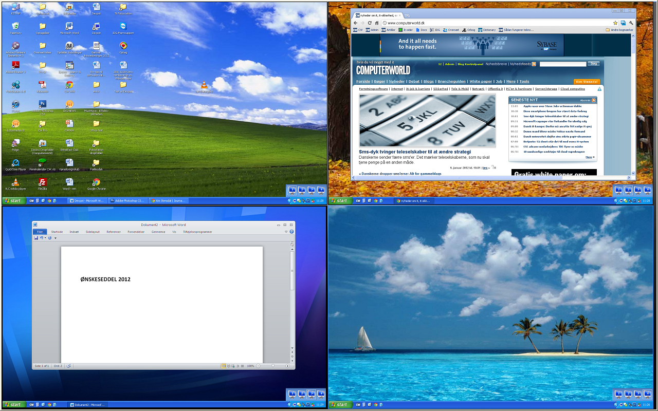 For at teste det nærmere, åbnede vi følgende applikationer fordelt på vores fire skriveborde: Photoshop, Lotus Notes, Word, Chrome med mange tabs åbne, iTunes, Adobe Premiere Elements og Adobe Reader.