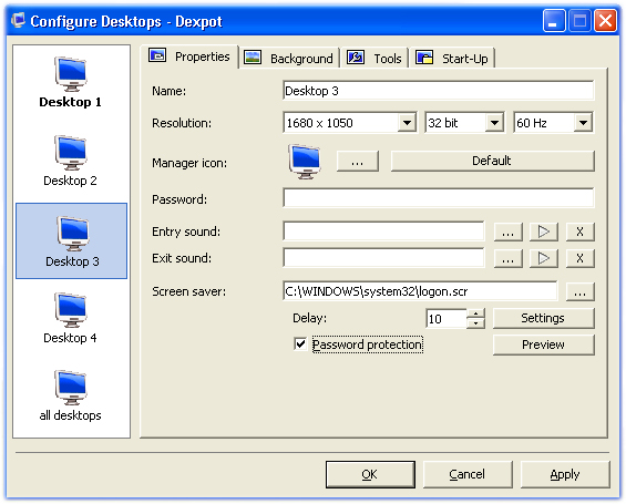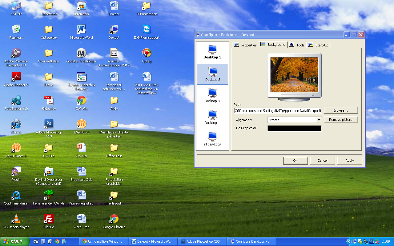 Hvis du går ind under Configure Desktops, kan du foretage individuelle indstillinger for hvert enkelt skrivebord.