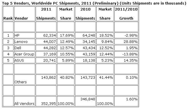 Specielt Lenovo har grund til at juble over 2011-udviklingen.