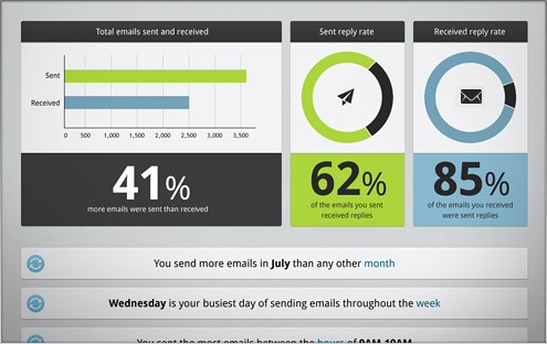 Eksempelvis kan du med værktøjet se præcist, hvor mange mails du har sendt og modtaget, og ikke mindst hvor stor en del af dine modtagne mails, som du har svaret på.