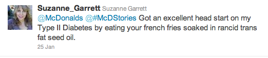 Debatten på Twitter løb i hvert fald lynhurtigt af sporet, og Twitter-brugernes erfaringer med McDonald's viste sig mest at handle om overvægt, sukkersyge og folk, der har fundet underlige ting i deres mad.