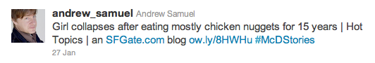 McDonald's betalte Twitter for at promovere sin kampagne med navnet #McDStories, hvor Twitter-brugerne blev opfordret til at dele deres oplevelser på McDonald's med resten af verden.