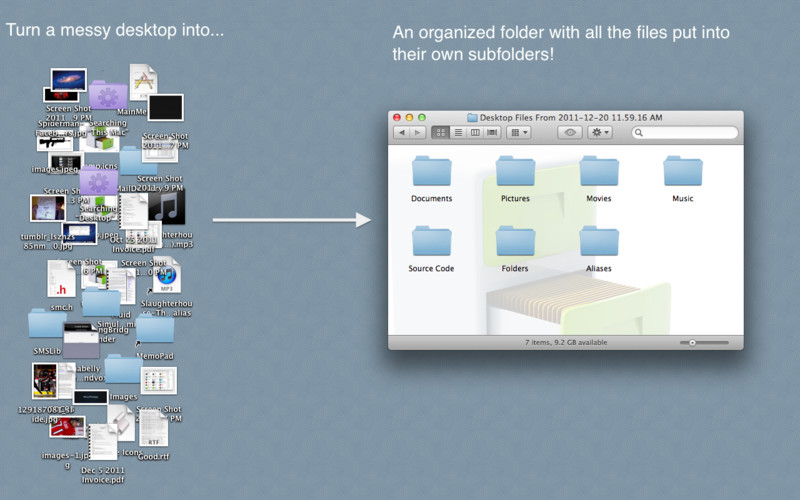 Denne skribent har to favorit-programmer, der netop kan gøre dette. De hedder Clean og Clean My Desktop.