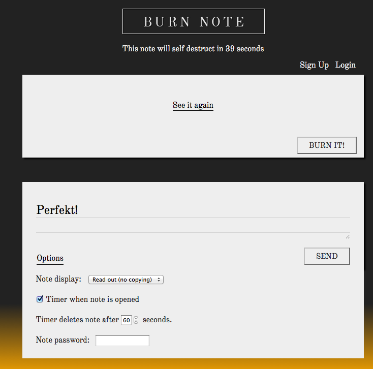 Beskederne på Burnnote er alle krypterede, og de bliver slettet med det samme, efter at de er blevet læst.