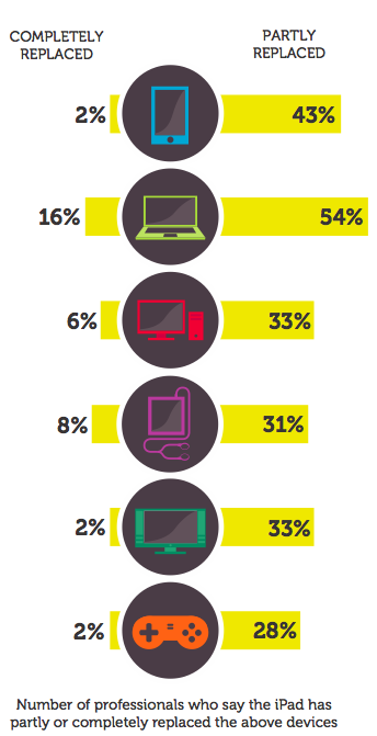 Hele 54 procent af de adspurgte it-erhvervsfolk oplyser i en global undersøgelse, at deres bærbare computer helt eller delvist er blevet erstattet af en iPad.