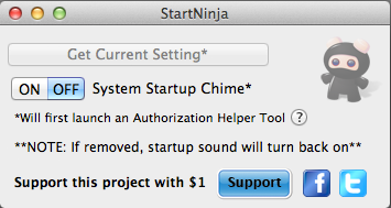 Har du en ældre version af Apples styresystem, virker Startninja desværre ikke. Her kan du i stedet bruge programmet StartupSound, som så til gengæld ikke virker med Lion.