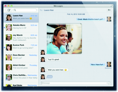 Med Beskeder på Mac OS X vil det blive muligt at sende billeder, video og tekst direkte til iOS-enheder, samtidig med at der er understøttelse af konti fra AIM, Jabber, Yahoo og Google Talk.