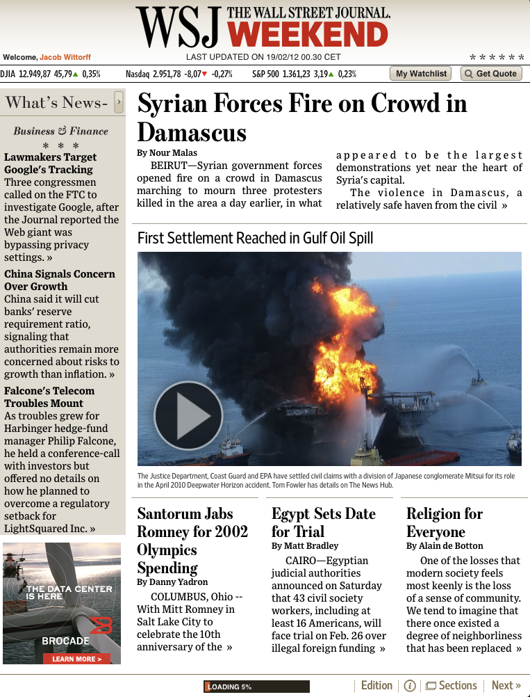 Eksempelvis har skribenten af denne artikel også abonnement på den amerikanske avis Wall Street Journal og ipad-avisen The Daily.