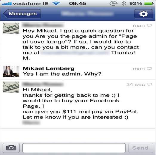 Det har driftige folk fået øje på. Mikael Lemberg har nu fået et tilbud om at sælge administrationsretten til siden for 111 dollars.