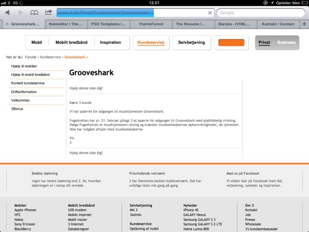 Teleselskabet 3 er blevet pålagt at blokere hjemmesiden Grooveshark på grund af ophavsretskrænkelser. Andre teleskaber har tidligere levet op til den type kendelser ved at DNS-spærre hjemmesiderne.