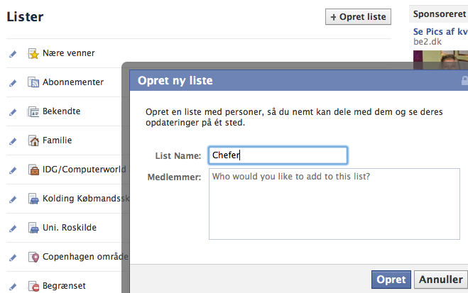Du kan dog organisere dine venner i lister, så du ikke behøver at dele dine opdateringer med alle dine venner.