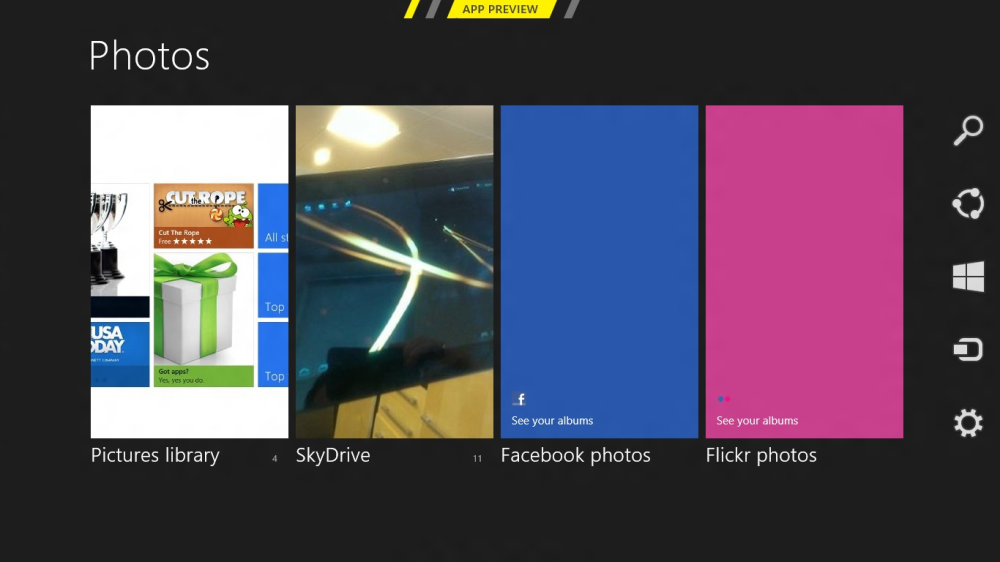 Foto-app'en understøtter eksempelvis SkyDrive, Facebook og Flickr (og flere kommer sikkert til), og i Metro-interfacet er der direkte link til din online SkyDrive-konto med 25 gigabyte gratis plads fra Microsoft til dig. Det er fint, medmindre du uploader fotos af folk med lidt for megen hud. Ja, selv en nøgen kravlenisse kan blive slettet.