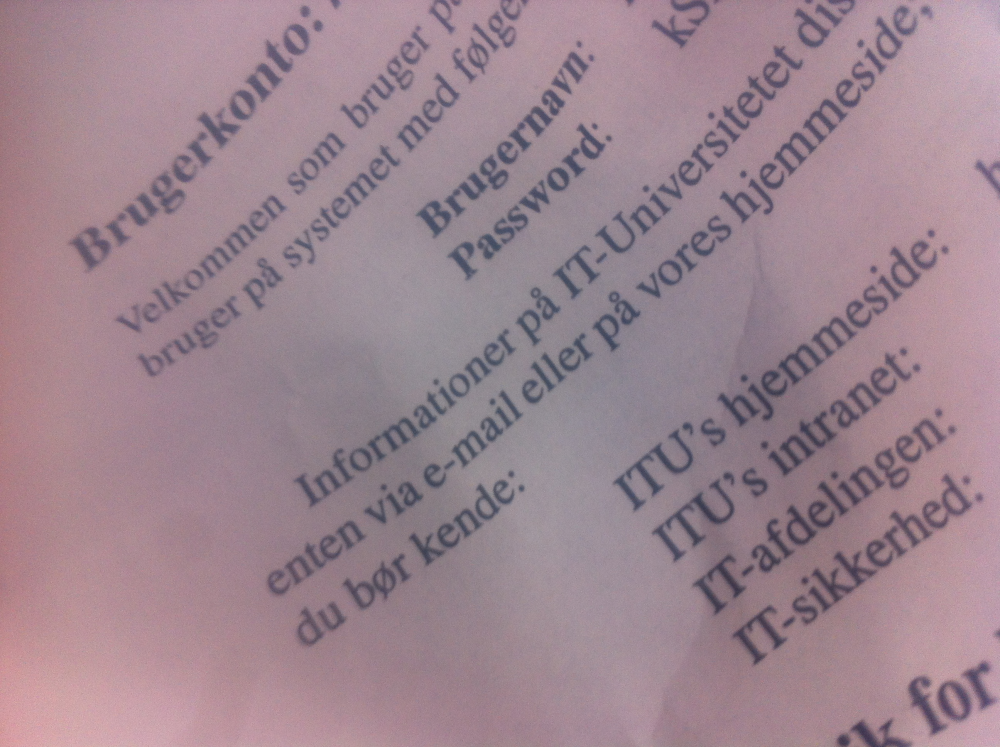Hvis studerende på IT-Universitetet mister deres kodeord og beder om et nyt, skal de ifølge skolens it-regler møde personligt op i it-afdelingen eller bede om at få det nye kodeord sendt med posten til den fysiske adresse, de har oplyst til skolen.Det kan forekomme paradoksalt på en digital undervisningsinstitution, der brøster sig at være på den teknologiske forkant.