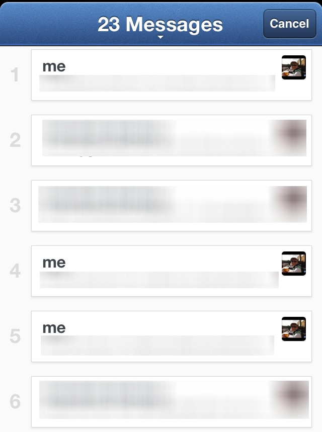 Når du åbner en korrespondance, åbner Sparrow den nyeste mail. Men du kan hurtigt bladre frem og tilbage mellem de forskellige mails i korrespondancen ved at swipe op og ned på siden.