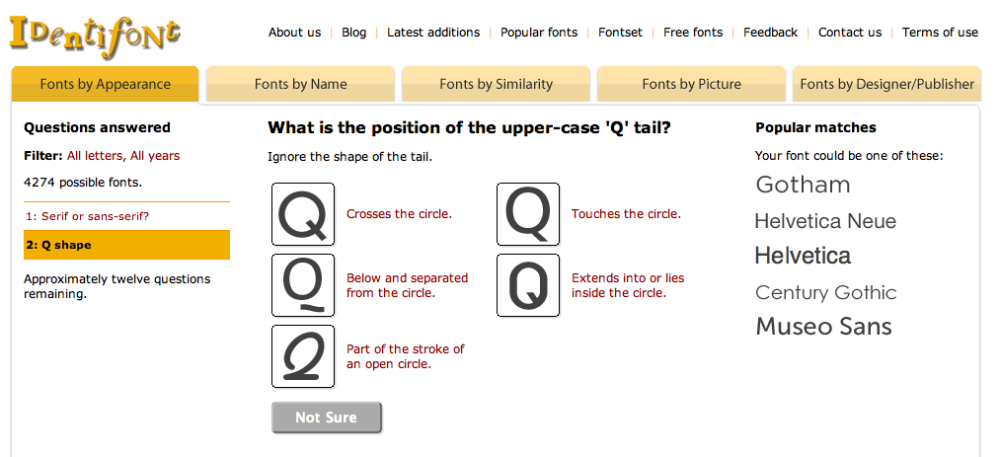 På hjemmesiden bliver du stillet en lang række spørgsmål, om hvordan skrifttypens bogstaver ser ud, og efter en lang række spørgsmål har Identifont et bud på, hvilken skrifttype der er tale om.