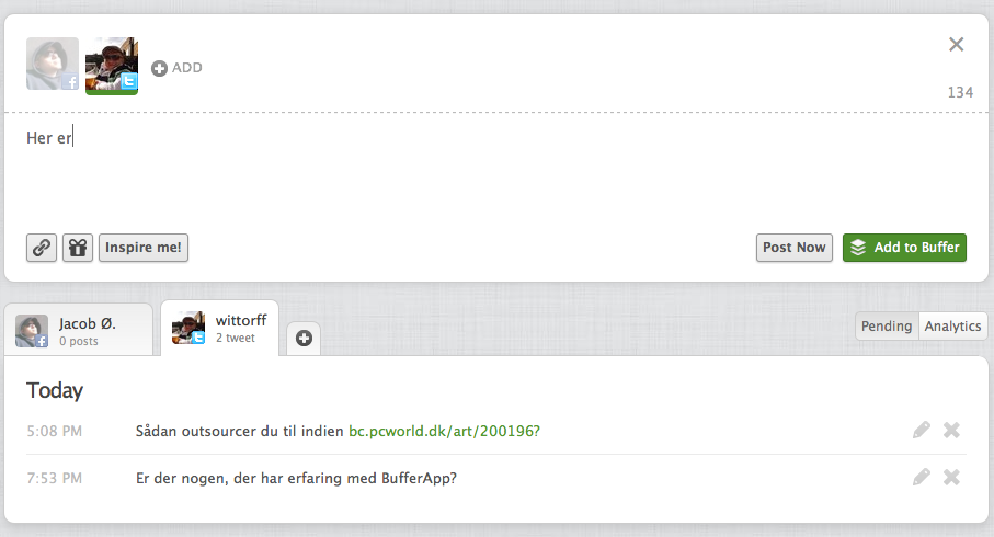 En tredje mulighed er tjenesten BufferApp, der både virker med Twitter og Facebook.