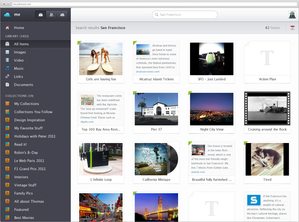 Uanset hvor du har gemt dem, giver Jolicloud Me lynhurtig adgang til det hele via en let og overskuelig brugerflade, der også indeholder en søgefunktion, som eksempelvis gør det muligt for dig at finde billeder og andre filer, der er blevet gemt for flere år siden.