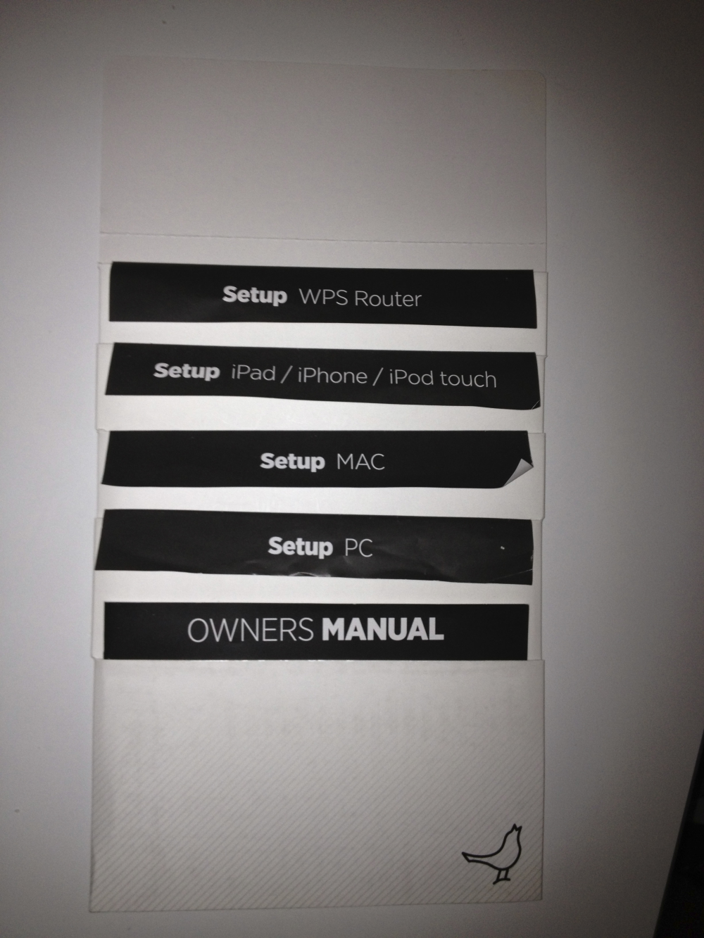 Opsætningen til hver type enhed har sin egen lille folder, der er nydeligt placeret på et papkort, og selve manualen er fyldestgørende illustreret.