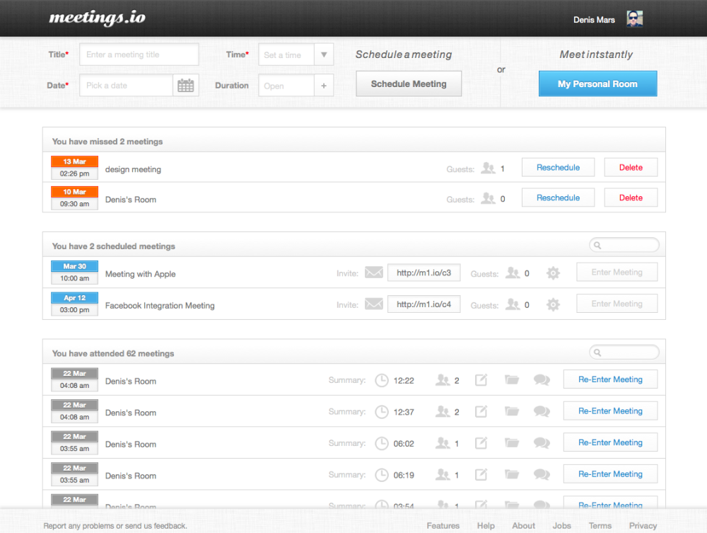 Det eneste krav for at bruge Meetings.io er, at du har installeret Flash på din computer, hvilket desværre udelukker, at du kan bruge tjenesten på iPad eller iPhone.