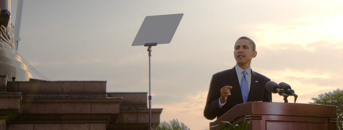 Når toppolitikere holder taler, vælger de ofte en løsning, hvor teleprompteren er placeret uden for synsvidde ved foden af talerstolen.