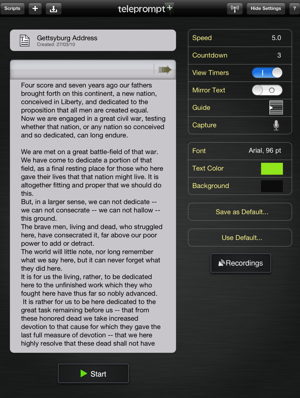 Når du har gjort det og er klar til at sætte teleprompteren i gang, har du dog mulighed for at finjustere på nogle af app'ens indstillinger.
