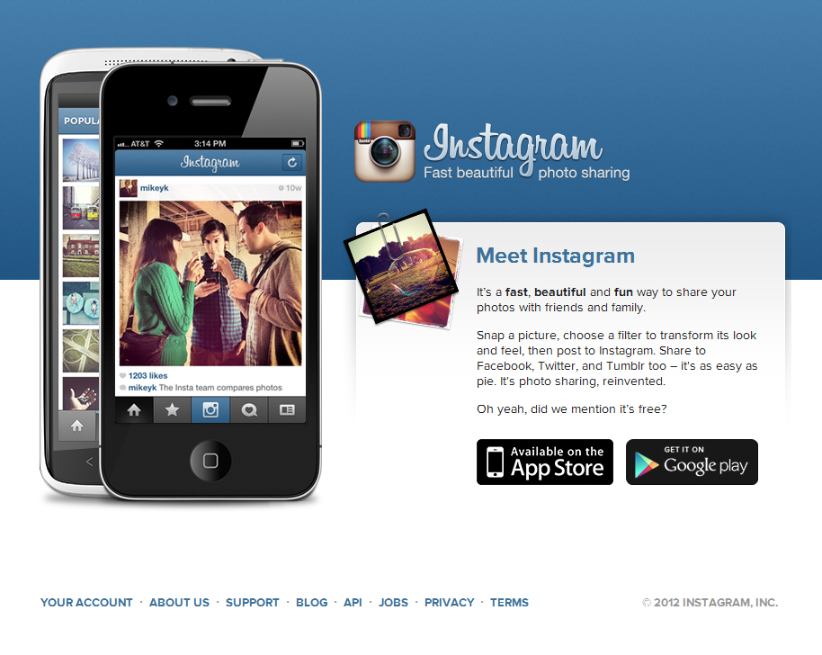 Det er muligt at få Instagram som app til både Android og iPhone, og ens manipulerede billeder kan let deles med omverdenen på sociale medier som Facebook og Twitter.