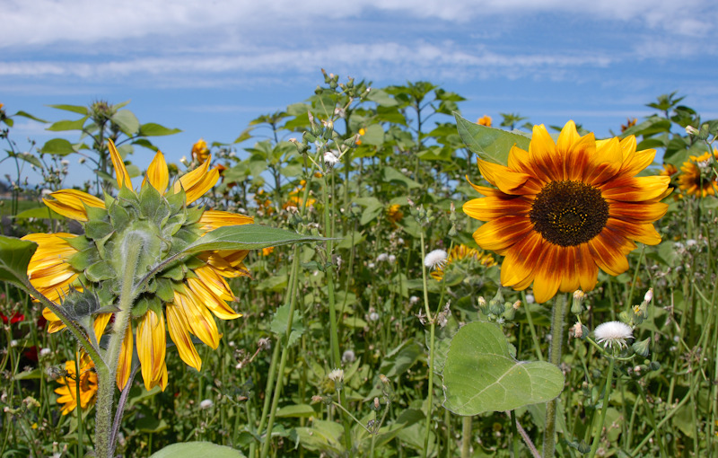 Men du behøver heller ikke at tage en plade pap under armen, når skal ud at fotografere blomster. Bladene, løvet eller græsset omkring blomsten kan udgøre et frodigt, grønt bagtæppe. Og hvis du fotograferer blomsten nedefra og altså op mod himlen, kan du få en strålende blå himmel som baggrund. Derudover er det let at overeksponere himlen, så den bliver lige så hvid som en skumplade.