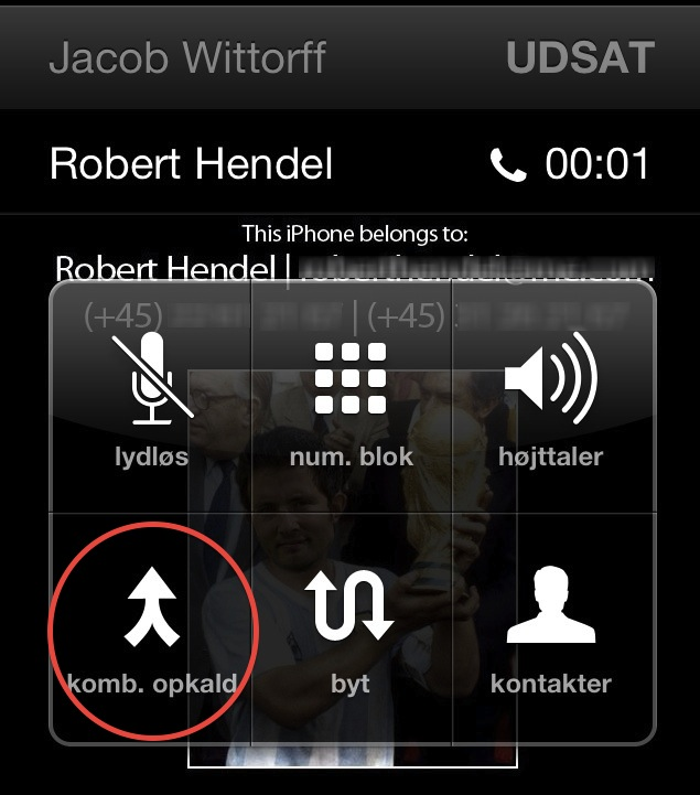 Når du får kontakt til den næste deltager i samtalen, trykker du på knappen "komb. opkald", som du kan se på billedet herunder.