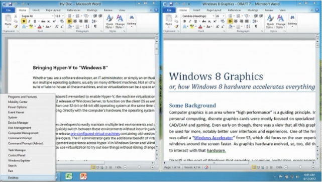 I stedet kan man højreklikke i det område i Windows 8 og så får man en menu op med funktioner, som it-administratorer typisk anvender - eksempelvis Kontrolpanelet, Strømindstillinger og Kør.