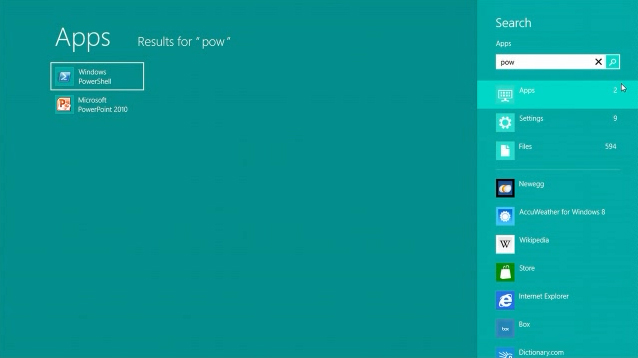 Hvis man imidlertid ønsker at benytte eksempelvis søge-funktionen fra dette skrivebord til at søge efter et bestemt dokument eller en bestemt app, så skiftes der til Metro-grænsefladen, som det ses herunder.