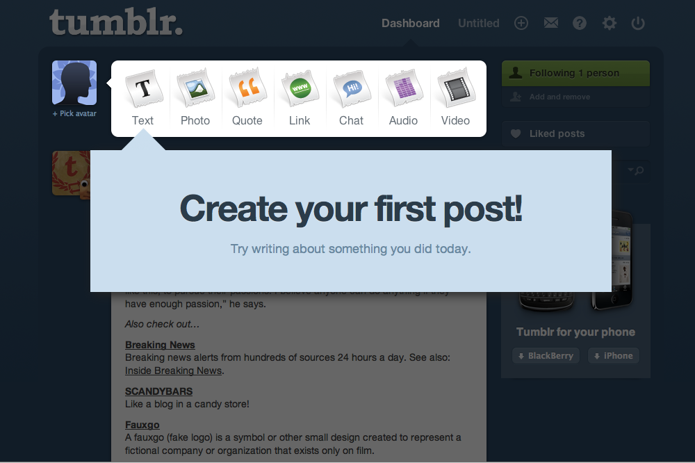 Men den måske største landvinding inden for brugervenligheden kommer sandsynligvis fra den amerikanske blogtjeneste Tumblr.